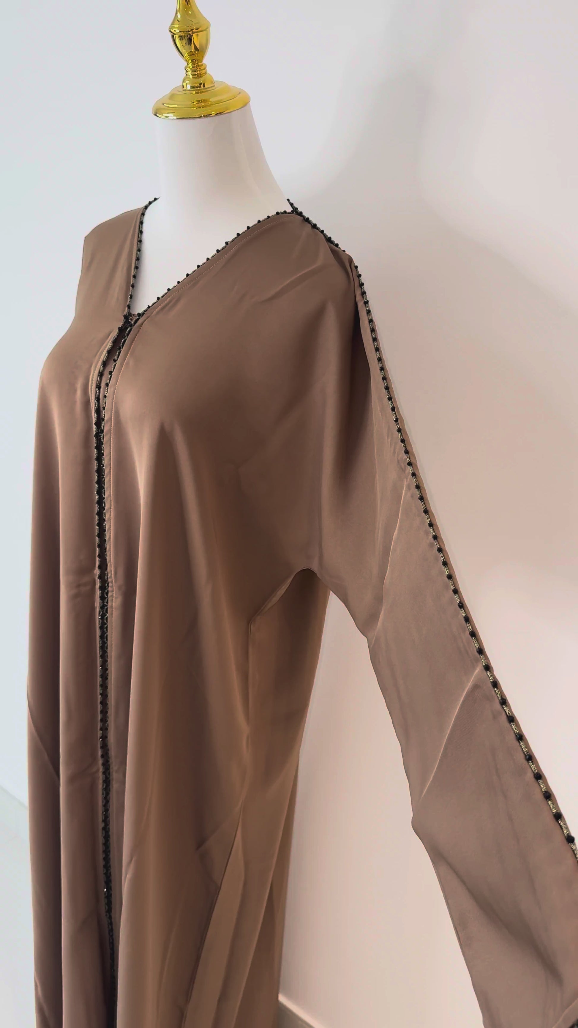 Step into effortless sophistication with the Aleena Abaya, a perfect blend of tradition and modern style. Tailored from premium, flowy fabric, this abaya offers a graceful drape that flatters every silhouette.