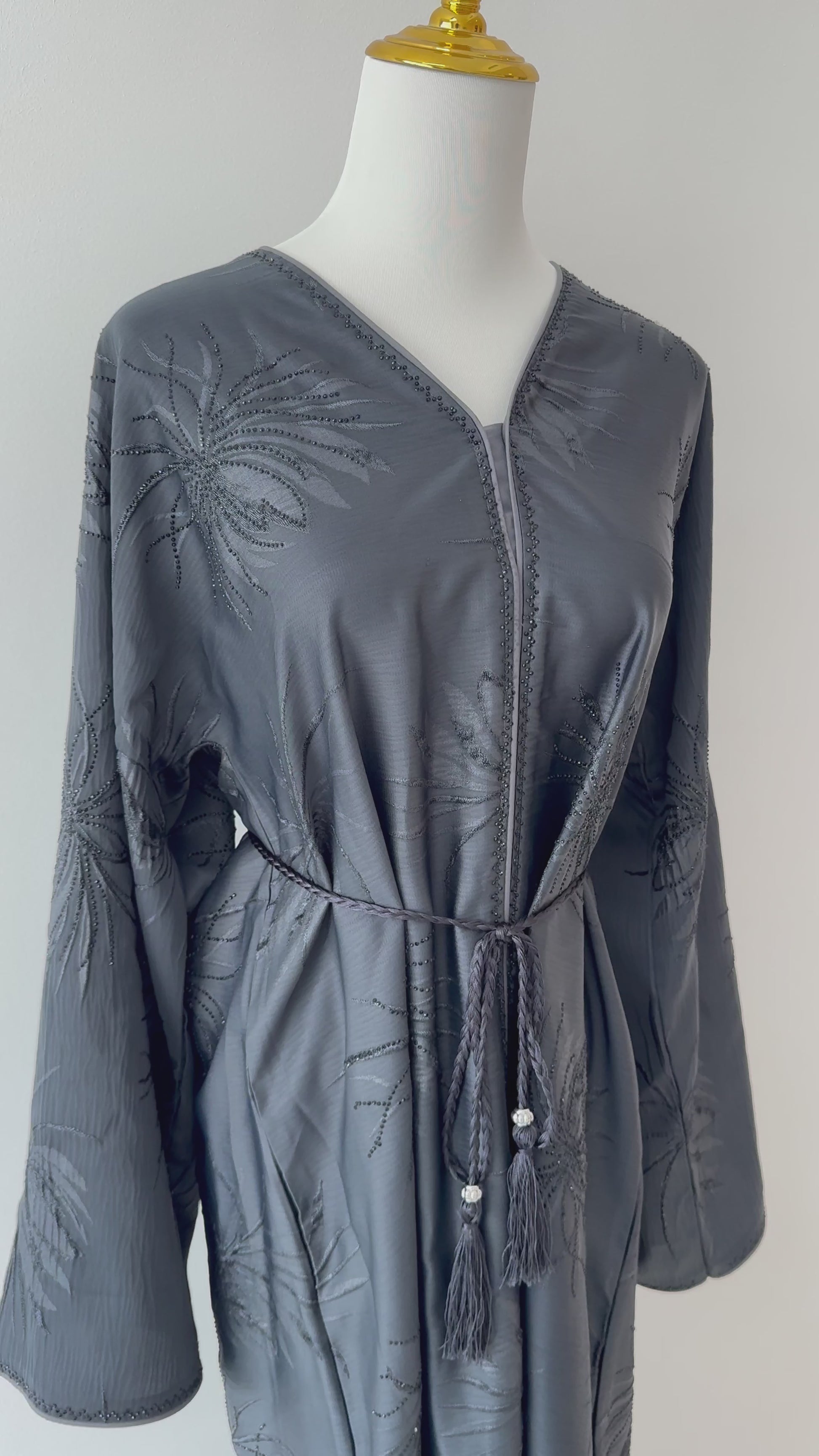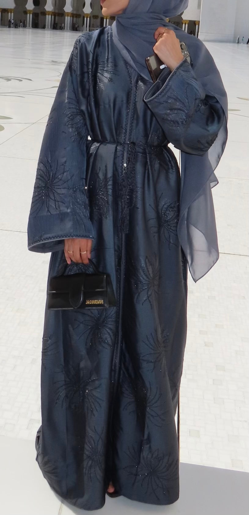 Inspired by the elegance of moonlit nights, the Layali Abaya is designed to captivate with its ethereal drape and exquisite finish. The high-quality, silky fabric falls effortlessly, creating a sleek yet dramatic silhouette that exudes sophistication. Every detail, from the fluid cut to the meticulous craftsmanship, ensures a seamless blend of comfort and elegance. The included headscarf and belt complete the look with an air of effortless refinement, making the Layali Abaya a must-have for those who appreciate timeless luxury with a modern edge.