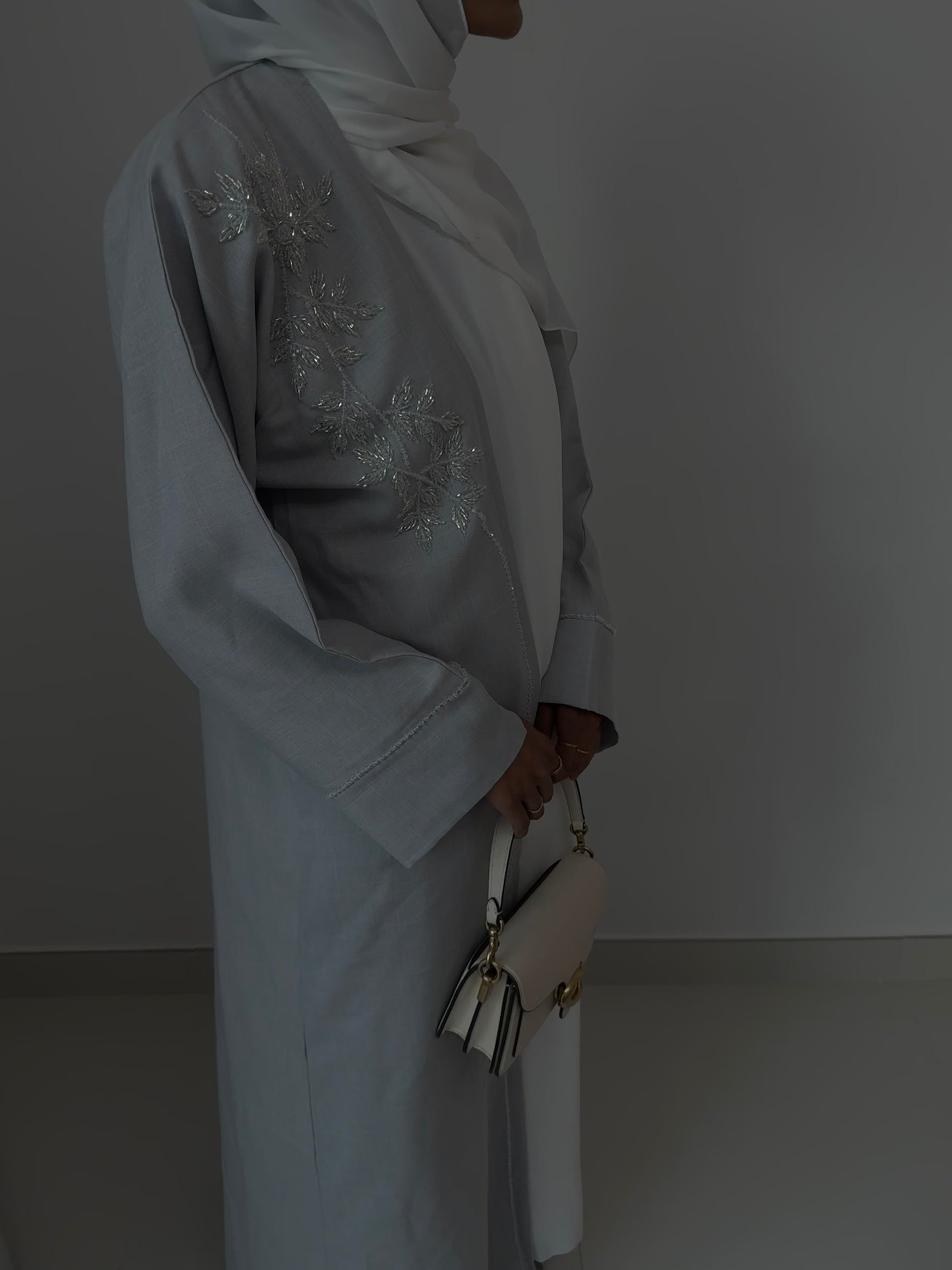 A fusion of regal elegance and modern charm, the Naila Abaya is crafted for those who appreciate exquisite detailing and premium craftsmanship. This three-piece set features a beautifully tailored open abaya that flows seamlessly over the inner dress, creating a layered yet lightweight effect. The fluid fabric catches light effortlessly, adding a subtle touch of opulence to your every movement. Finished with a delicately matching headscarf and inner slip, this abaya is the epitome of refined beauty, perfect for elevating any wardrobe with a touch of timeless luxury.