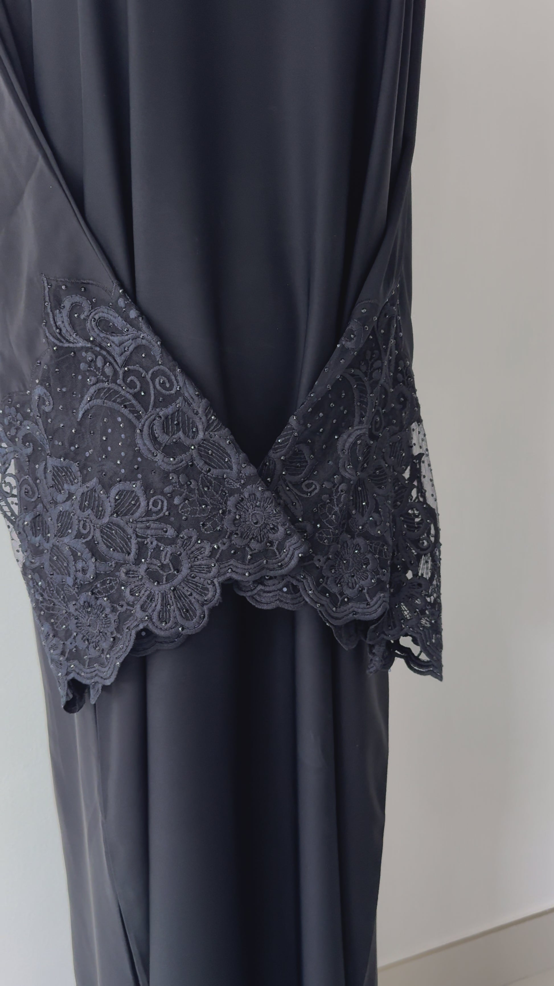 Elevate your elegance with the Samira Abaya — a stunning masterpiece where the allure of black meets the delicate beauty of lace. Crafted to perfection, this two-piece set features exquisite black lace detailing that adds a layer of timeless sophistication to its flowing silhouette. The abaya moves gracefully with every step, exuding effortless poise and refinement. Paired with a beautifully coordinated headscarf, the Samira Abaya is designed for moments that call for quiet grandeur and elevated beauty. Whether worn at an intimate gathering or a grand celebration, Samira is the perfect expression of classic luxury and modern elegance.